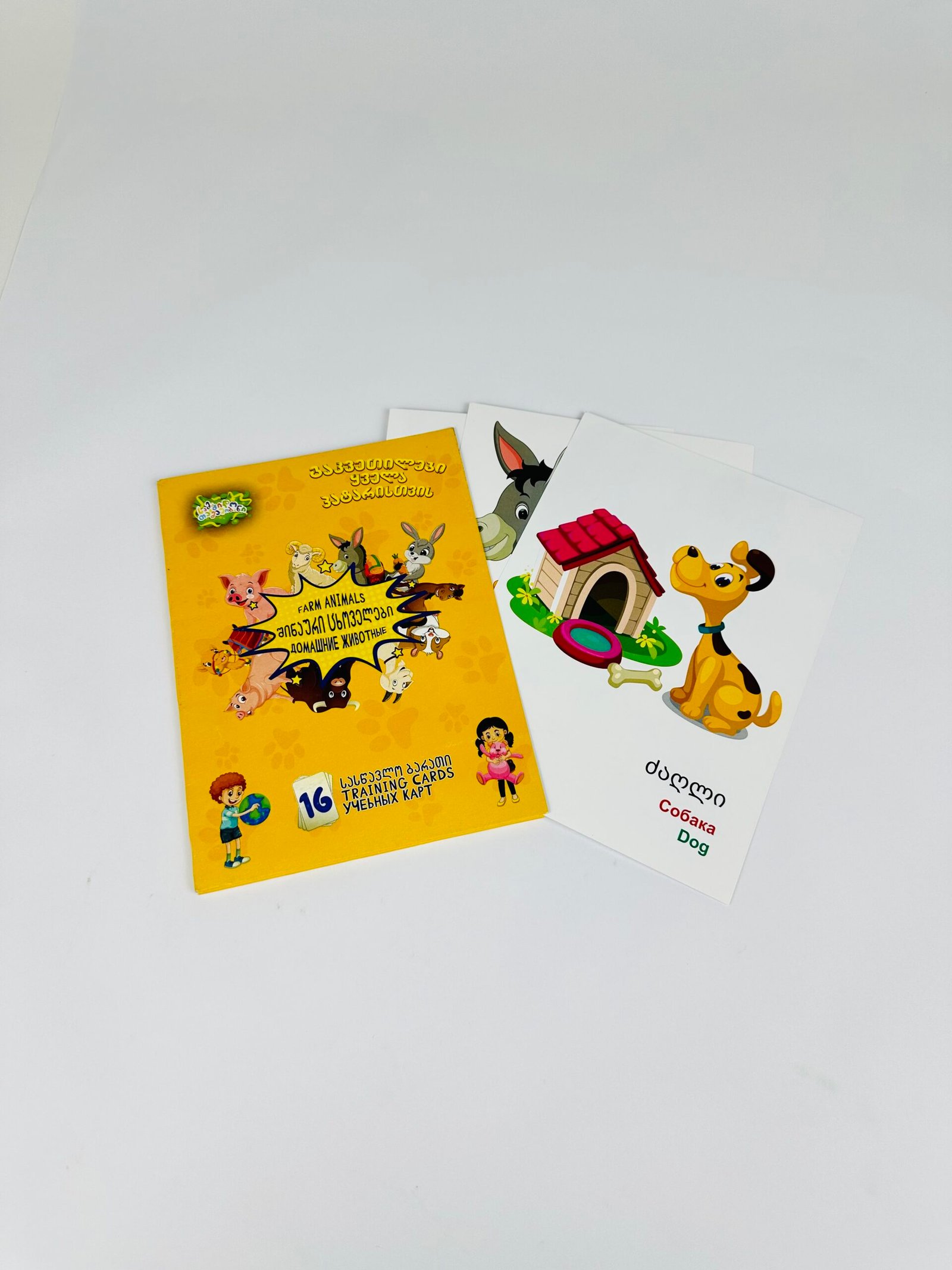 შინაური ცხოველებისასწავლო ბარათი ეხმარება ბავშვებს გაიცნონ და შეისწავლონ ყველაზე საყვარელი და გავრცელებული შინაური ცხოველები, როგორიცაა ძაღლები, კატები, კურდღლები, თევზები და სხვა. ბარათებზე წარმოდგენილია ცხოველის გამოსახულება, რაც ბავშვებისთვის სწავლას უფრო სახალისოს და ინტერაქტიულს ხდის.