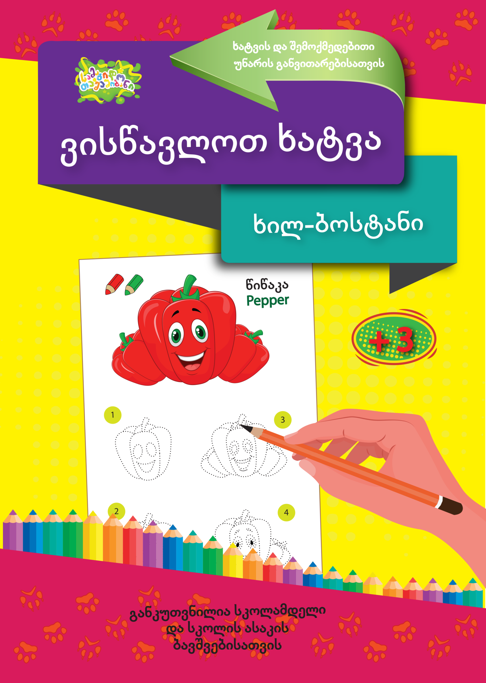 ჟურნალში ნაბიჯ-ნაბიჯ ნაჩვენებია სხვადასხვა ნივთების ხატვის პროცესი, რაც ხელს უწყობს ბავშვების წარმოსახვის, კრეატიულობისა და ვიზუალური აღქმის განვითარებას.